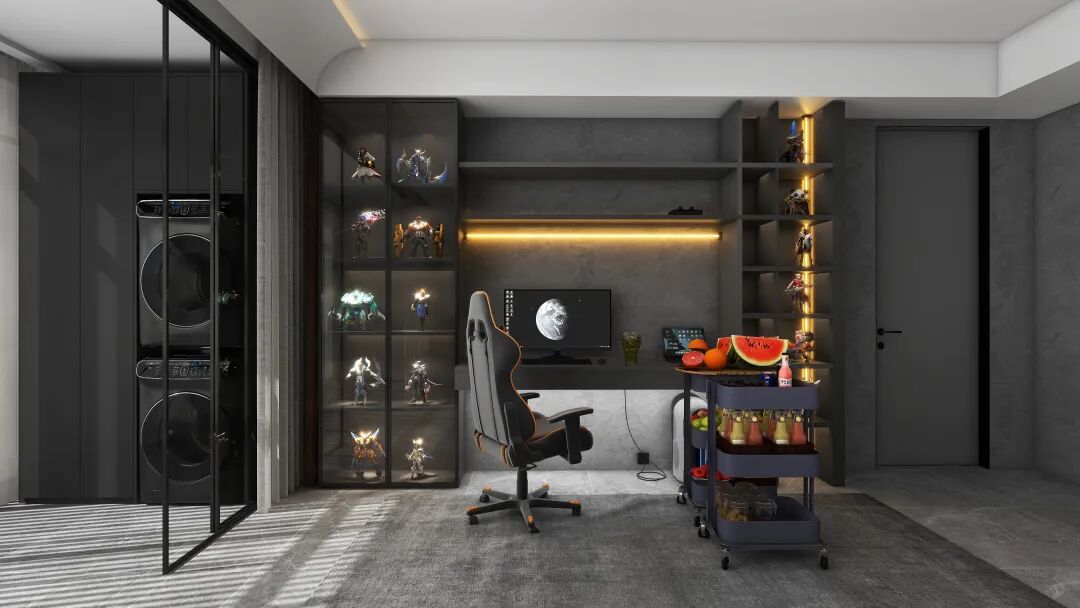 毕竟大多数男生都希望有一个属于自己的电竞房,整面的手办墙、吃不完的零食,绝佳的游戏环境,累了就在露台的休闲椅发发呆。