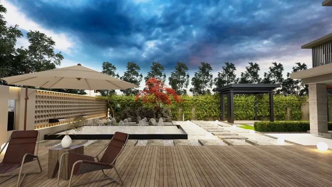 闲适的户外设计,少不了舒适的户外家具,种点喜爱的绿植、养几尾金鱼、木地板配上长木椅,品茗赏花,也是人生一大乐事。