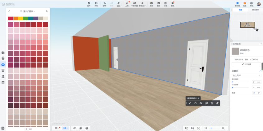 其次是酷家乐硬装工具,通过对展厅空间内地顶墙进行设计丰富空间层次感和美感,如材质和色彩铺贴、硬装异形等,过程中学生可充分尝试,验证设计理念。