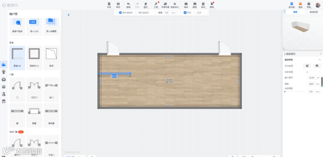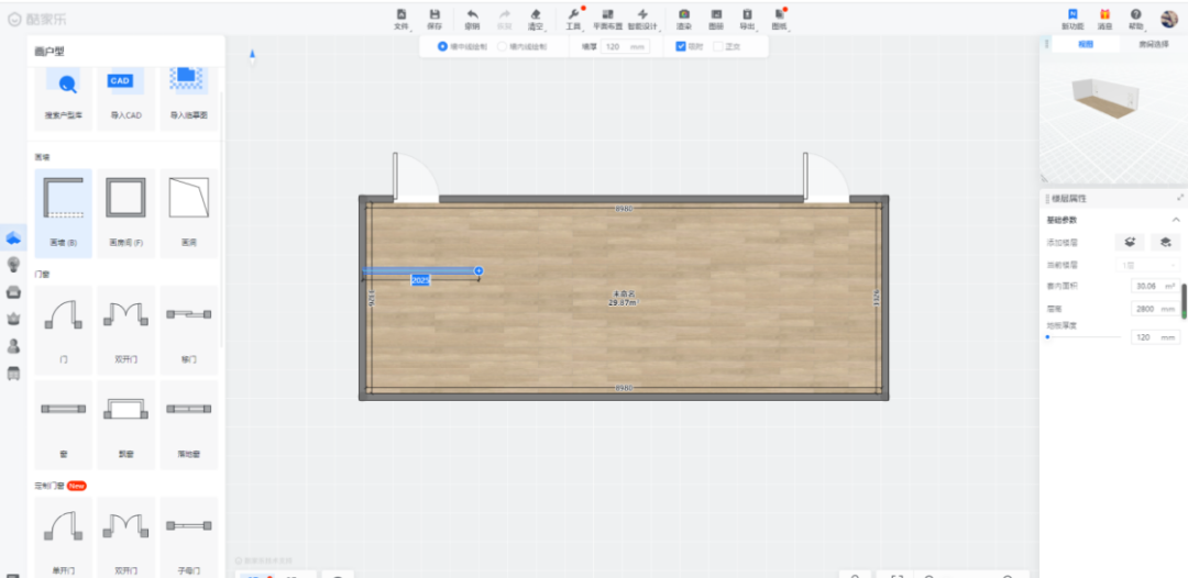 学生在虚拟展厅制作过程中,充分操作运用酷家乐云设计工具各个模块。首先是酷家乐户型工具,用于自定义绘制虚拟展厅整体空间;