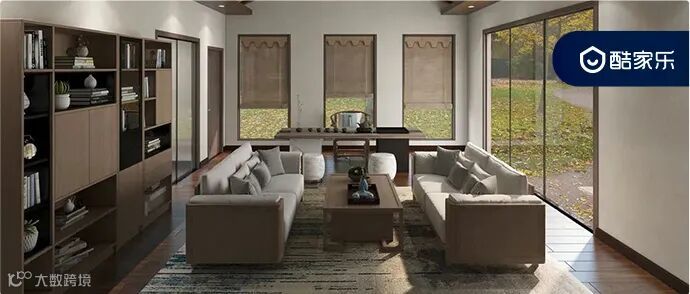 它可以场景互动,结合酷家乐全景图,就能实时展现单品在场景和实景中的定制呈现效果。