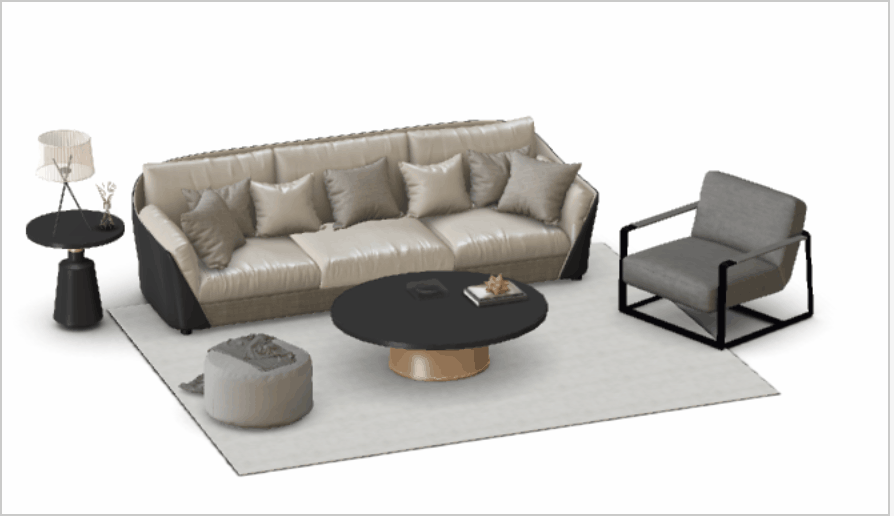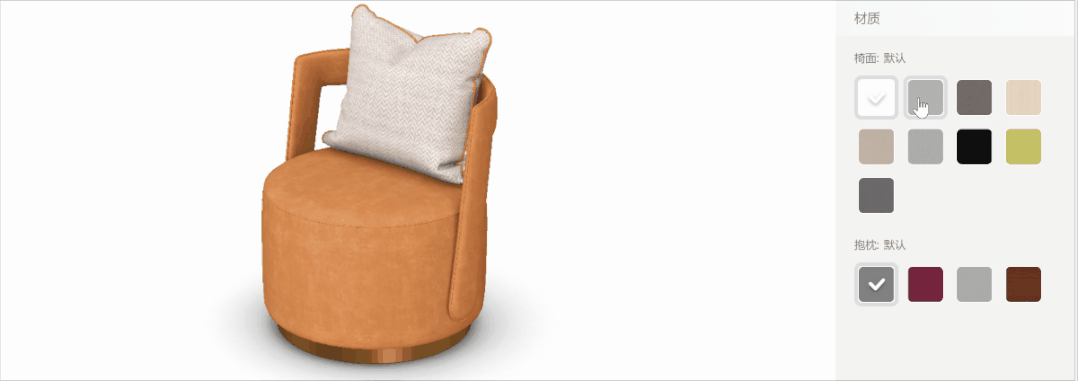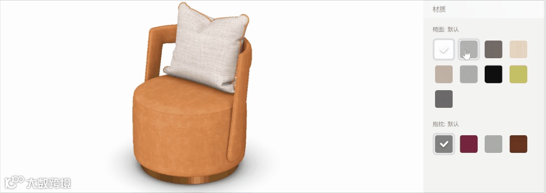 它可以3D互动和实时定制,不仅能让你看清家具的每一个角度的每一处细节,还可以更换它的材质、部件、款式。