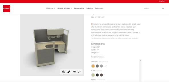 比如国外家居品牌Friant,以前在门店遇到客户的定制需求,没办法立即让客户看到定制后的效果,现在用酷品秀不仅能够实现立体的产品展示,还能马上按照客户需要的尺寸、款式、材质出效果。