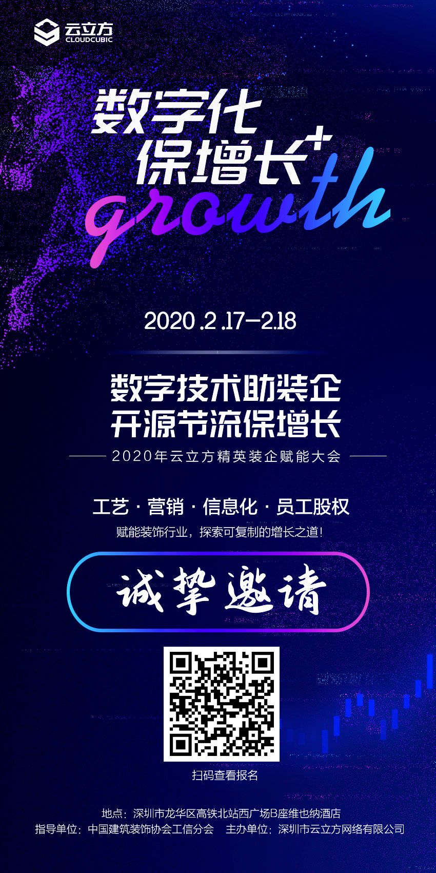 2020云立方精英装企赋能大会,值得您花一天时间来参与。报名采取实名制,席位有限,谢绝空降,敬请谅解!