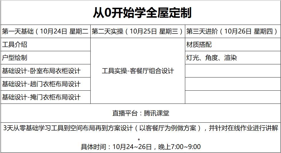 以下是本次全屋定制训练营课程表: