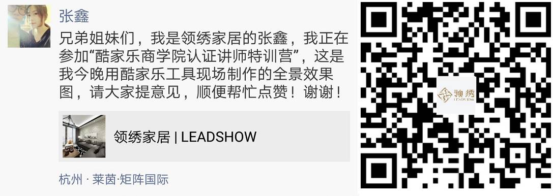 大饼老师的《如何做培训》和《酷家乐落地营销》,米乐老师的《酷家乐工具进阶》,梦马老师的《学习进阶知识分享》,真理和多多老师的《酷家乐案例分享》,诺言、海子和西决老师的《酷家乐工具详解》,玛丽老师的《色彩搭配与工具》以及果粒老师的《模型与素材》等等,从不同角度解析酷家乐培训,饕鬄盛宴,全员共享!