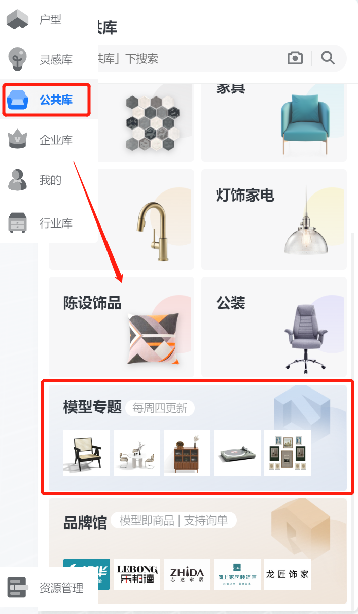 打开酷家乐云设计公共库-模型专题即可获取