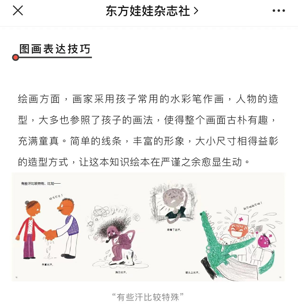 公开资料显示,绘本由江苏凤凰少年儿童出版社出版,系《东方娃娃》原创绘本系列中的一本科普图画书,旨在从孩子的视角来发问和作答,解答人体流汗的相关知识。