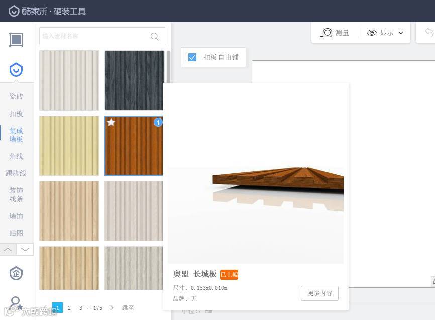 如果用户想要看这个集成墙板的剖面视图怎么办?鼠标悬浮在素材上的“i”按钮上,就会展开集成墙板的剖面视图啦~