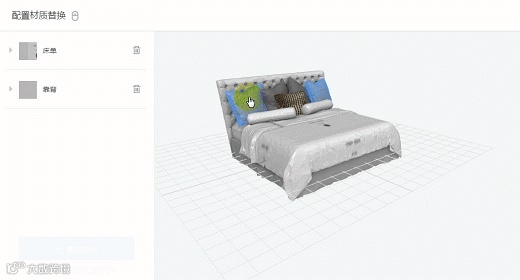 在后台,可以给家具模型的不同材质部位,分别配上支持替换的面料种类,这将大大加快材质替换的速度,管理更加便捷!即使是不同材质部位也可组合,同时替换材质,满足商家们对产品的个性化需求。