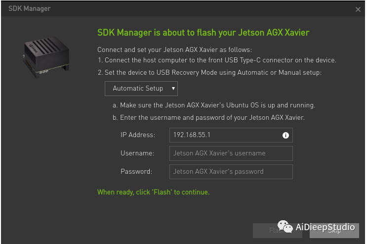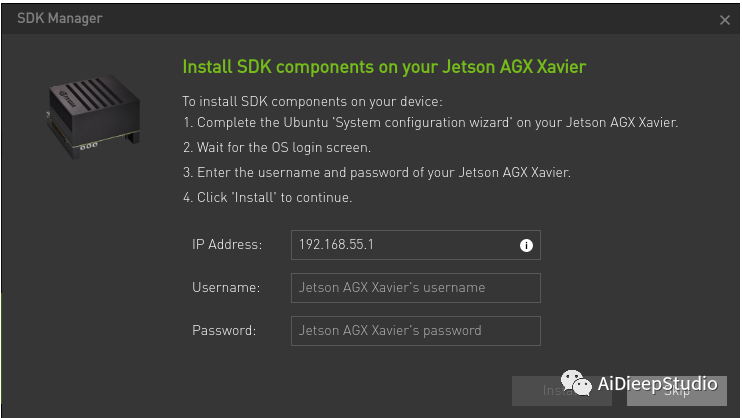 3>在SDK Manager的Flash安装后对话框中输入您在Jetson配置期间创建的用户名和密码。