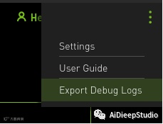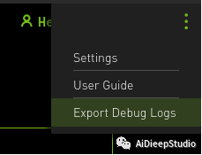 或者,单击窗口右上角的菜单图标(“⋮”),然后从右上角的下拉菜单中选择导出调试日志。