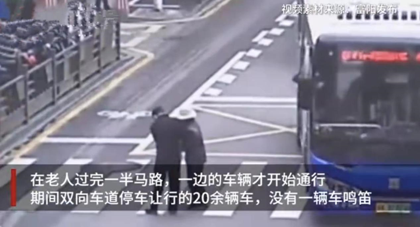 1、老人过马路走了5分钟没人按喇叭 近日,浙江杭州一位拄拐老人过马路时,5分钟内,双向车道20余辆车停车让行,没有一辆车鸣笛。执勤民警则陪在老人身旁,慢慢将其搀扶到斑马线对面,最终用警车将老人送回家中。(@中国警方在线)