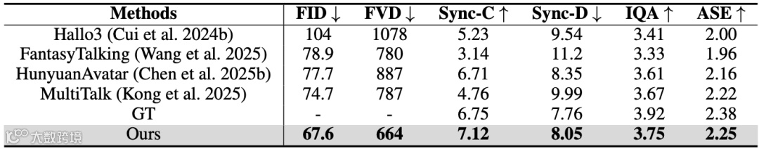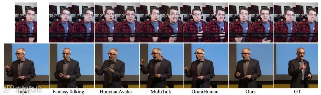 • 测试数据:HDTF(高质量人脸视频)+ AVSpeech 测试集(人脸 & 半身)。