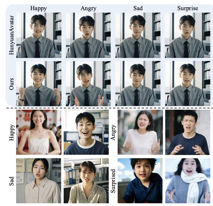 • 半身动画能力更强:与 HunyuanAvatar、FantasyTalking 等相比,OmniAvatar 展现出更自然流畅的动作。