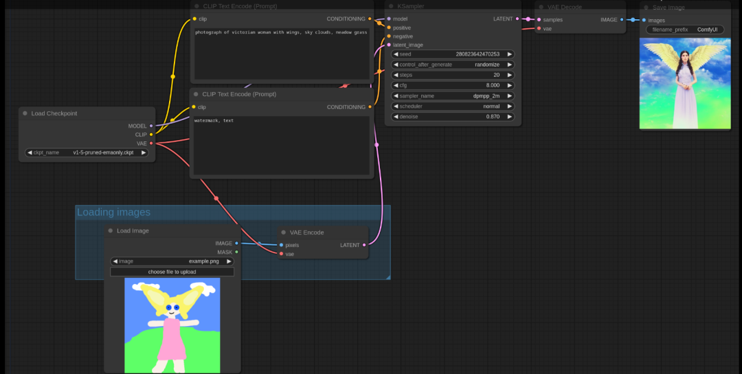 ComfyUI 工作流中的节点如同搭建积木,以下是实现图案迁移所需的节点分类与功能解析: