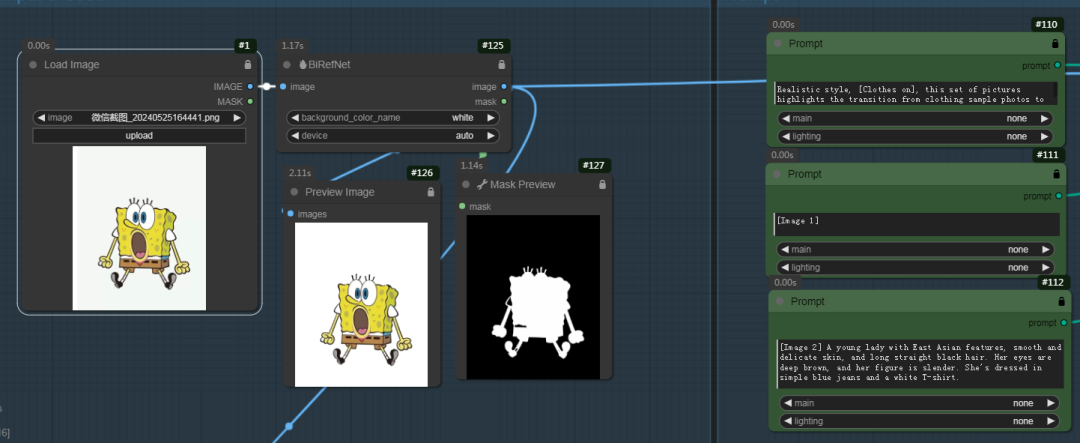 借助MaskPreview+节点预览结果,并通过SaveImage节点保存最终图像。