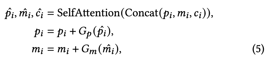 对于给定的个性化嵌入 ,它与由运动嵌入 和词汇标记 表征的轨迹相关联。其中 、 、 和 分别表示每张参考图像的标记数、轨迹标记数、文本标记数和标记维度。首先将这三个模态的标记进行拼接,随后采用集成两个门控机制的自注意力机制来促进跨模态交互: