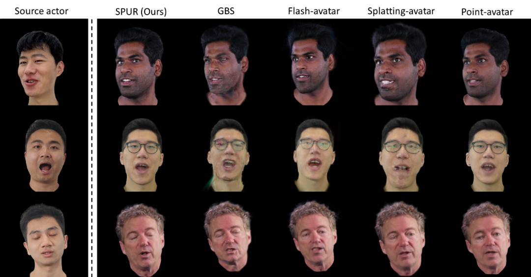 几何变形灵活性不足:现有方法依赖通用参数模型(3DMM)驱动高斯点变形,难以准确捕捉个性化表情变化; -