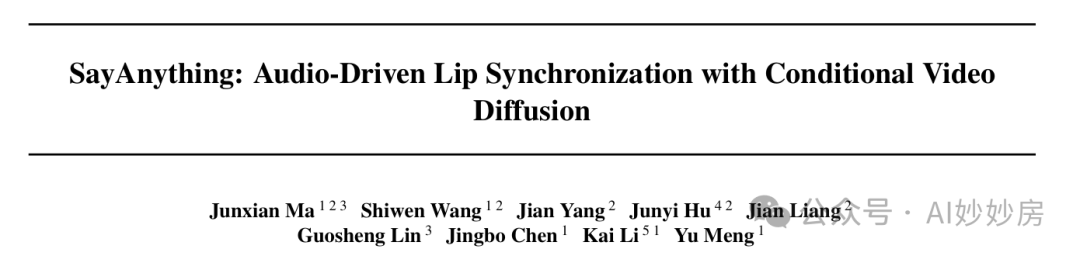 论文名:SayAnything: Audio-Driven Lip Synchronization with Conditional Video Diffusion
