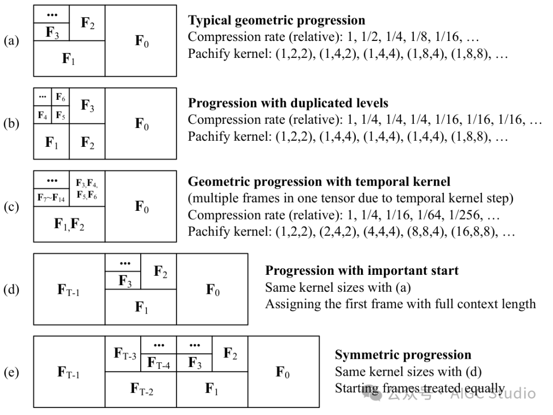 “更重要”的帧被赋予了更多的 GPU 资源(上下文长度)——在这个例子中,F0 是最重要的,因为它是距离“下一帧预测”目标最近的帧。