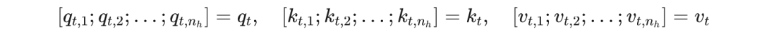 标准多头注意力(MHA)首先通过三个矩阵计算查询(q)、键(k)和值(v):