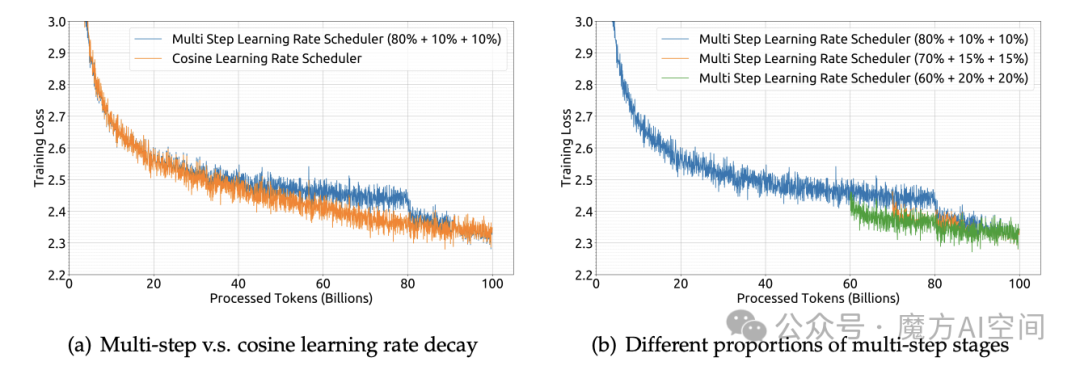 超参数选择:初始标准差为0.006,使用AdamW优化器,超参数为β1=0.9,β2=0.95,权重衰减为0.1。采用多步学习率调度器,学习率在2000个预热步后达到最大值,然后逐步降低。