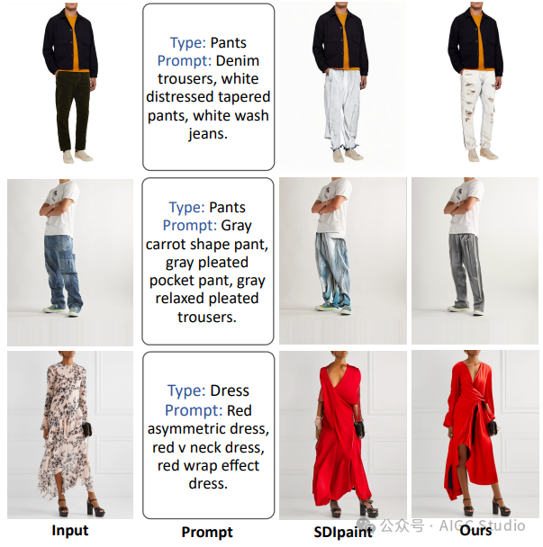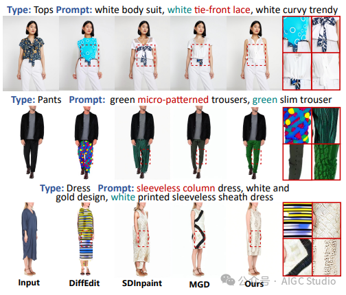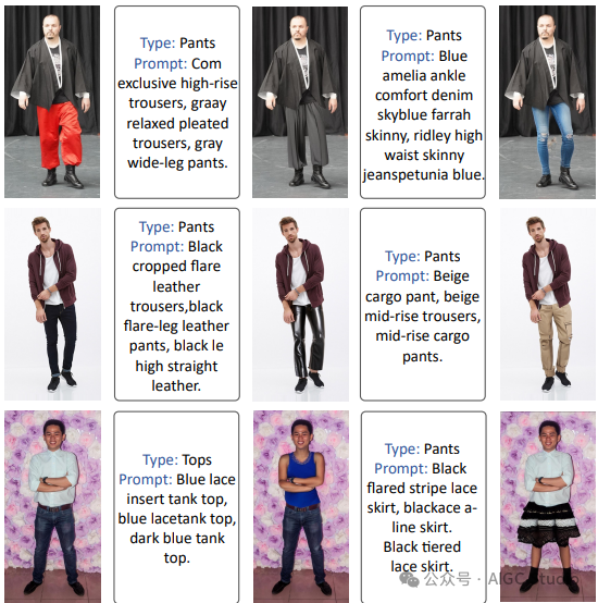 AnyDesign可以适应各种设置,并使用灵活的提示编辑各种服装类别。
