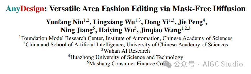 AnyDesign:通过无遮罩扩散的多功能区域时尚编辑