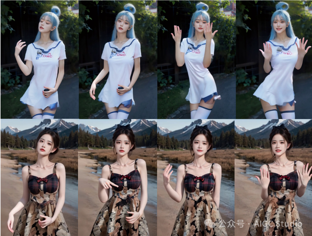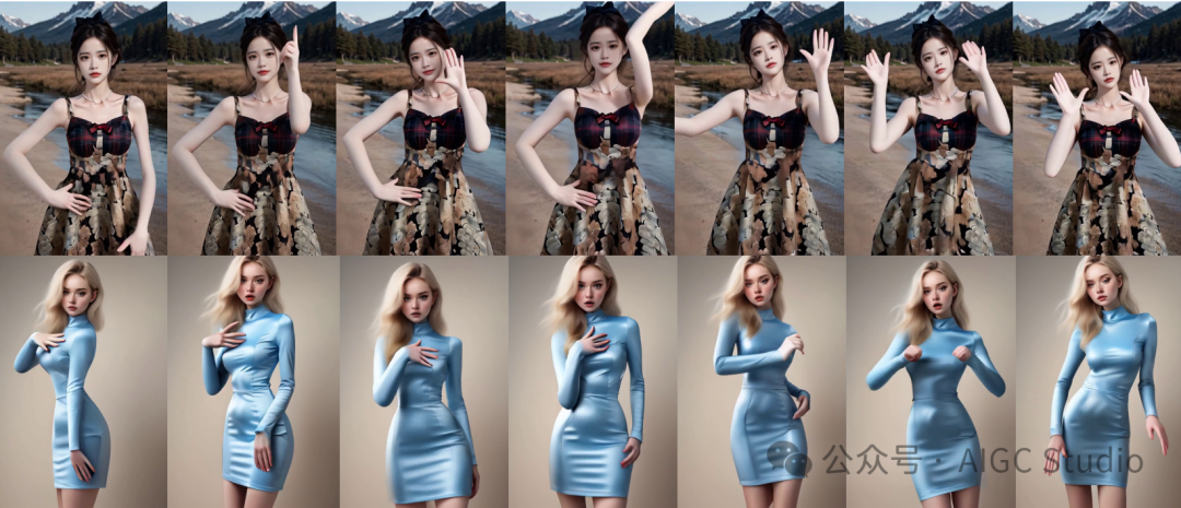 给出了稳定视频扩散的详细生成结果。我们利用姿势序列作为角色的指导动画。