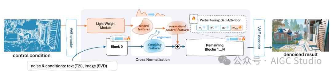本文介绍了 ControlNeXt,一种先进而高效的可控图像和视频生成方法。 ControlNeXt 采用精简简洁的架构,消除了繁重的辅助组件,以最大限度地减少延迟开销并减少可训练参数。这种轻量级设计使其能够充当具有强大鲁棒性和兼容性的即插即用模块,进一步允许与其他 LoRA 权重集成以改变生成风格而无需额外训练。我们提出了交叉归一化,用于使用新引入的参数对预训练的大型模型进行微调,从而促进更快、更稳定的训练收敛。在各种图像和视频生成主干上进行的大量实验证明了我们方法的有效性和鲁棒性。