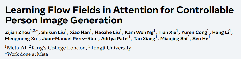 可控人物图像生成旨在根据参考图像生成人物图像,从而精确控制人物的外观或姿势。然而,先前的方法尽管实现了较高的整体图像质量,但却经常扭曲参考图像中的细粒度纹理细节。论文将这些扭曲归因于对参考图像中相应区域的注意力不足。为了解决这个问题,作者提出在注意力机制中学习流场(Leffa ),它在训练期间明确引导目标查询关注注意层中的正确参考键。具体而言,它是通过基于扩散的基线内注意力图之上的正则化损失来实现的。大量实验表明Leffa在控制外观(虚拟试穿)和姿势(姿势转换)方面实现了最佳性能,显着减少了细粒度细节失真,同时保持了高图像质量。此外,论文还证明了损失与模型无关,可以用来提高其他扩散模型的性能。