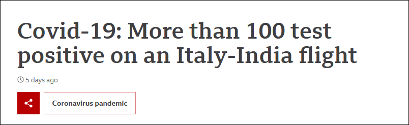 BBC上周报道:意大利飞印度航班发现超100例阳性患者