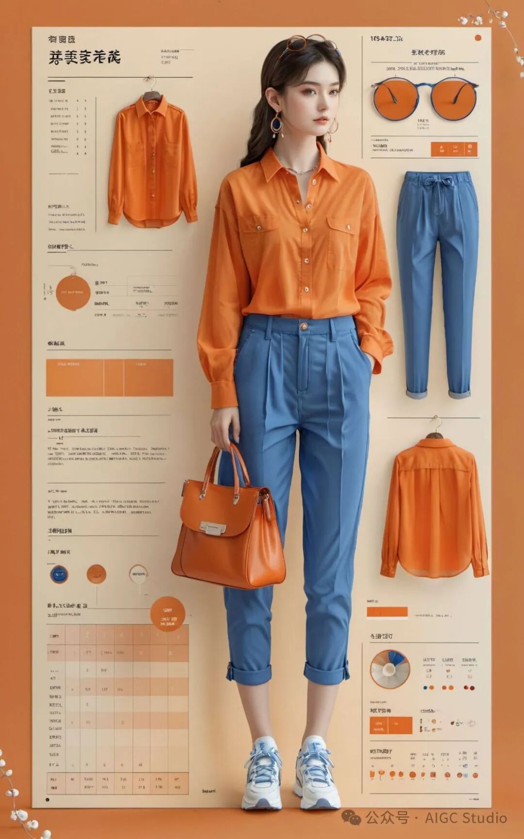 Prompt: XUER classification by clothing part,1girl, solo, orange Casual shirt and blue chinos, jewelry, standing, earrings, shoes, bag, hoop earrings, fashion, highly detailed,ultra-high resolution, 32K UHD,sharp focus, best-quality, masterpiece, classification by clothing part, Girl and her stuff, encyclopedia, infographic design, magazine design, visualization,reference sheet, <lora:绪儿 分类背景 XUER classification by clothing part:0.8>,