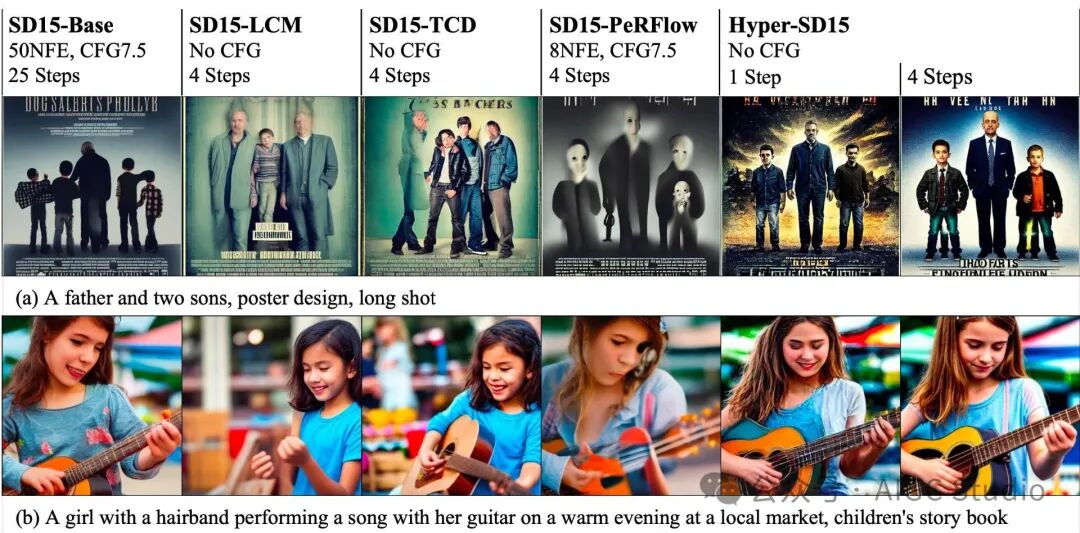 具有不同步骤的 Hyper-SD LoRA 可应用于不同的基础模型,并持续生成高质量图像