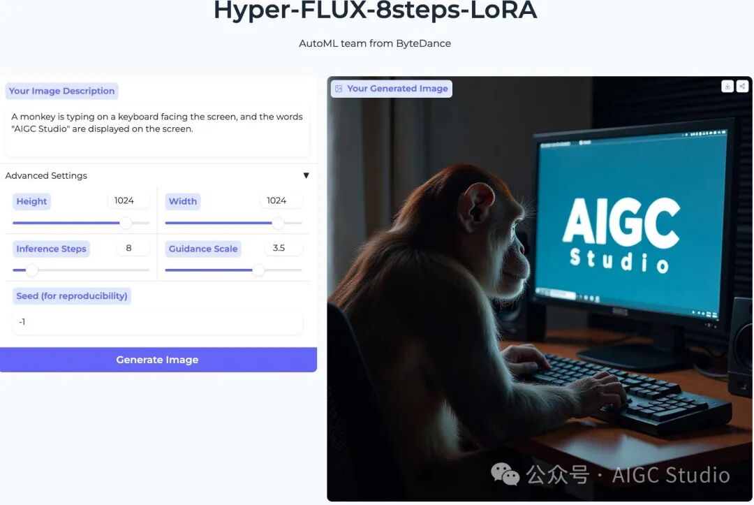 试用地址:https://huggingface.co/spaces/ByteDance/Hyper-FLUX-8Steps-LoRA