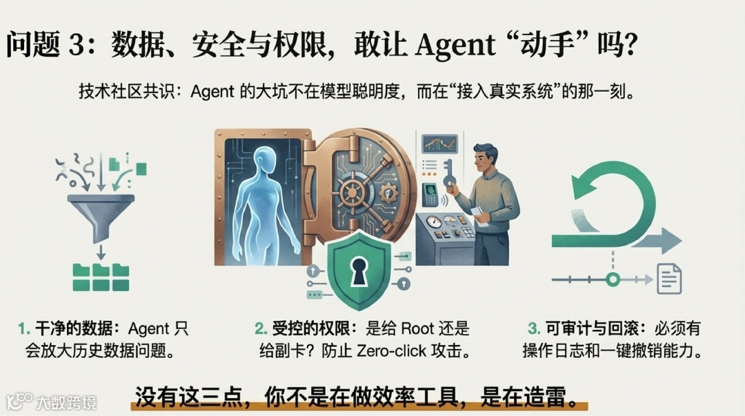 问题三:数据、安全与权限,敢让 Agent “动手”吗?