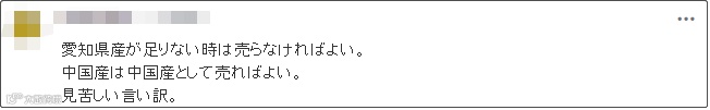 “爱知县产的不够的时候不卖就好了。中国产的就作为中国产品来卖啊。真是难看的借口。”