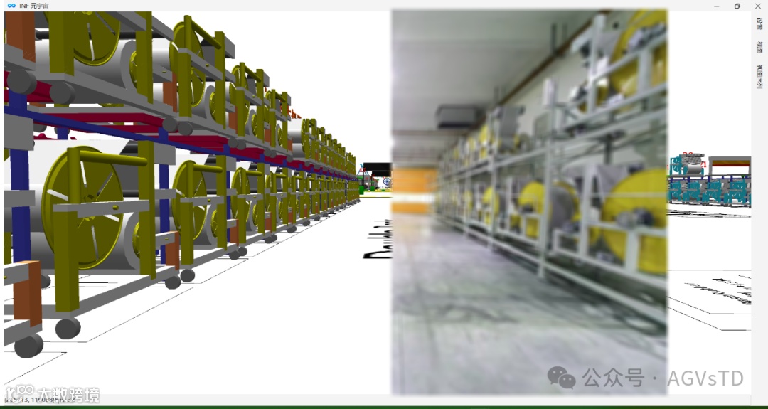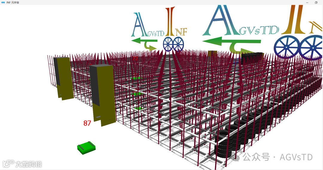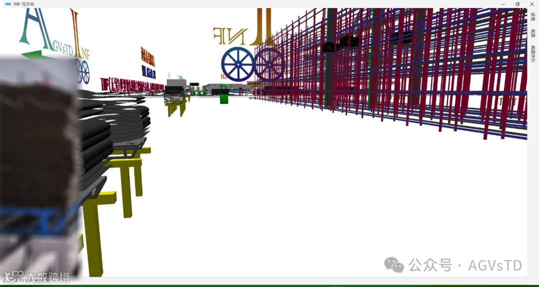 使用复合AGV转运胎胚(详见后面视频),该复合AGV和INF之间使用基于VDA5050_2.0的接口协议,并与其他叉车AGV共同在一片区域混合作业,所有AGV在交通管制处理上没有任何区别,完全依赖INF.ML(深度学习多神经网络算法)生成的交通管制模型。唯一需要注意的是,由于VDA5050在工业重载移动机器人作业环境的考虑欠佳,AGVsTD使用了明确不能在交通控制中使用的来自state中的information来实现一部分交通判断---获取AGV的货叉高度,以判断高举升AGV的货叉高度是否达到安全通过快速门预期,以及在取、放货之前始终判断货叉高度与预期高度的差值是否在安全预期范围内。