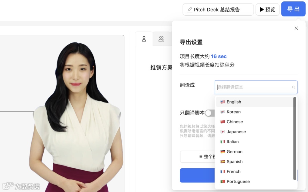 “Topic-to-Video”能够高效发挥用户的创造力,只需几分钟,就能将您脑海中的想法或创意转化为视频。只需输入与主题相关的关键词,AI Studios便可自动生成文本及AI数字人旁白, 并生成极具创意的视频。