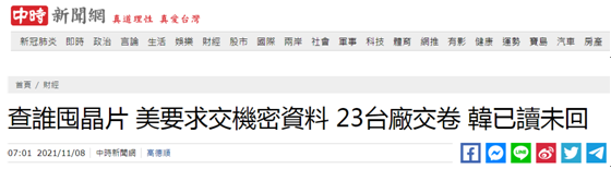 报道提到,除台积电外,韩国三星、SK海力士等企业尚未回复“交卷”;此外,曾公开表示将配合美方的美国英特尔、德国大厂英飞凌,也尚未答复。