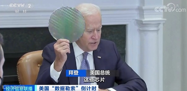 美国总统 拜登:芯片,就像我手里拿着的这个。这些芯片、晶圆,我们的电池、宽带,这是一切的基础。