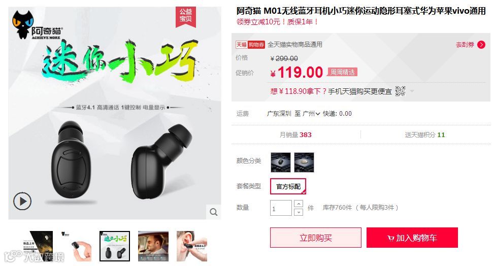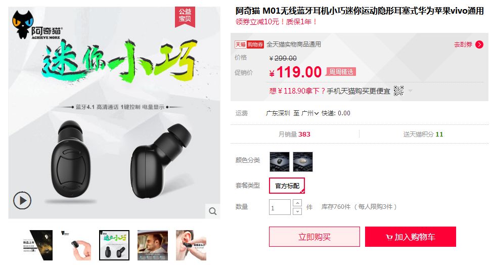 领完券之后会自动跳到商品详情页(这个是天猫的,原价119有点坑啊,这时候优惠券就很给力了)