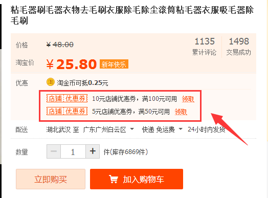 像这种打开商品页面直接就可以看到有优惠券领取的就是看得见的优惠,这种优惠券一般都是属于满减类型的,要买到一定的数额才可以享受的优惠