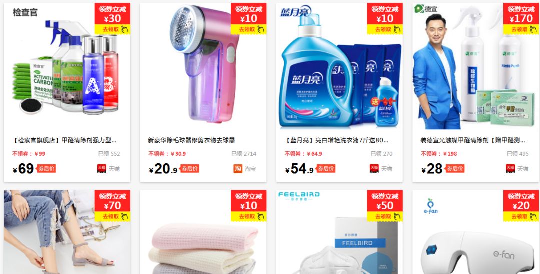 这些都是有折扣的商品,优惠金额都不一样(没办法,看卖家心情,人家想给多少就给多少),你可以直接在上面挑选商品来购买,也可以先逛完淘宝或者天猫之后再来这些平台找你想要的优惠券