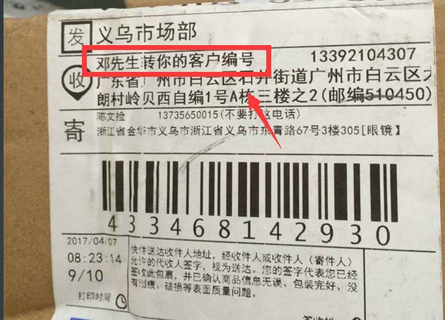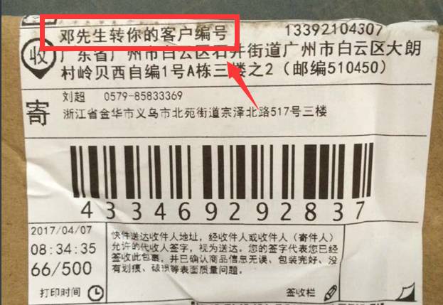 “收件人:邓先生转你的客户编号”,我以为我们这么写已经很明白了,你们寄件的时候一定会乖乖地把你们的客户编号给补上,可是!万万没想到!