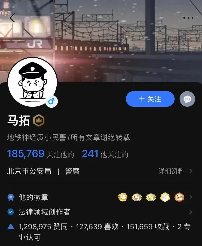 在知乎上,“地铁神经质小民警马拓”