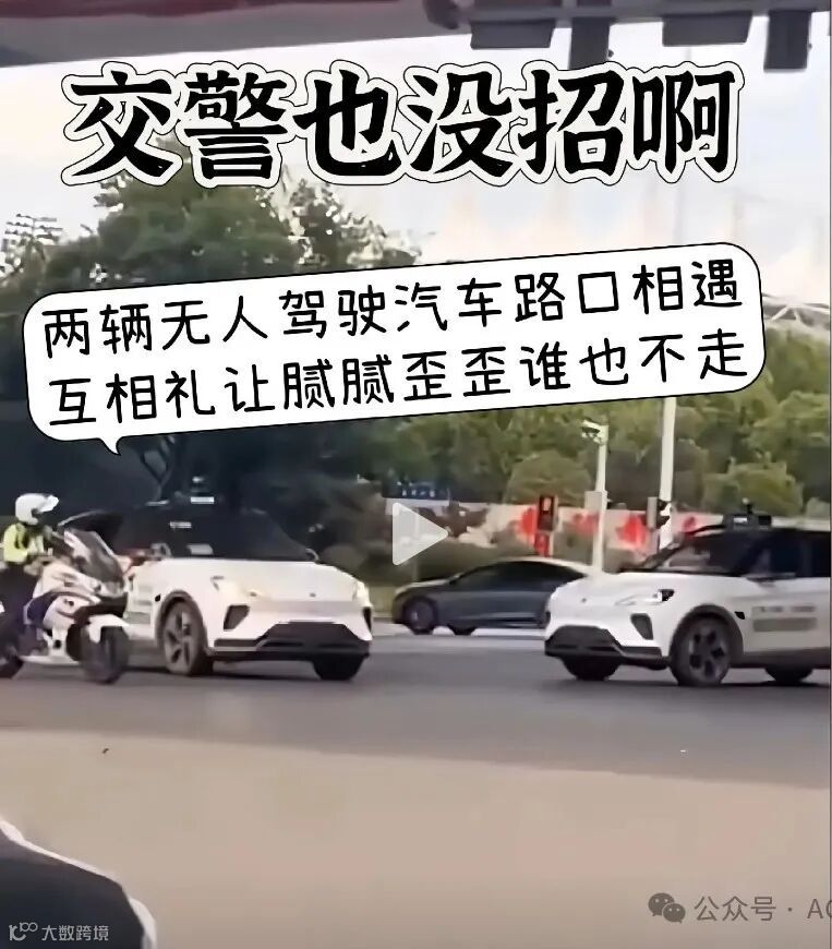 某快递无人配送机器人之间产生死锁,谁也不让谁或者互相谦让: