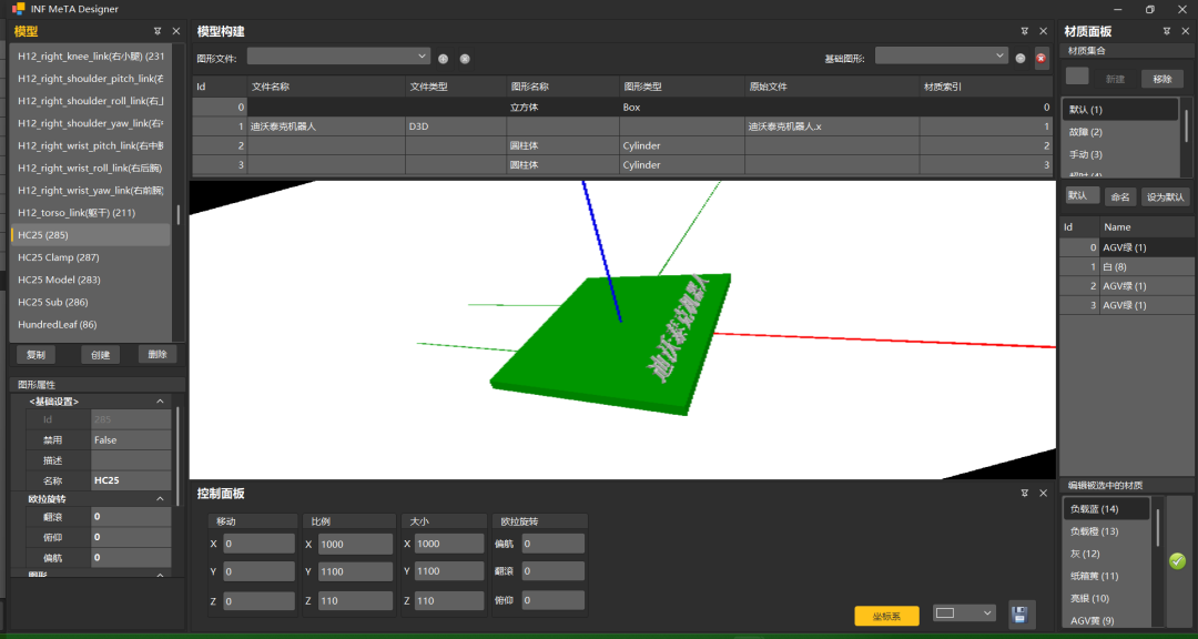 主体负载处理机械装置激活:圆柱体,4个 -