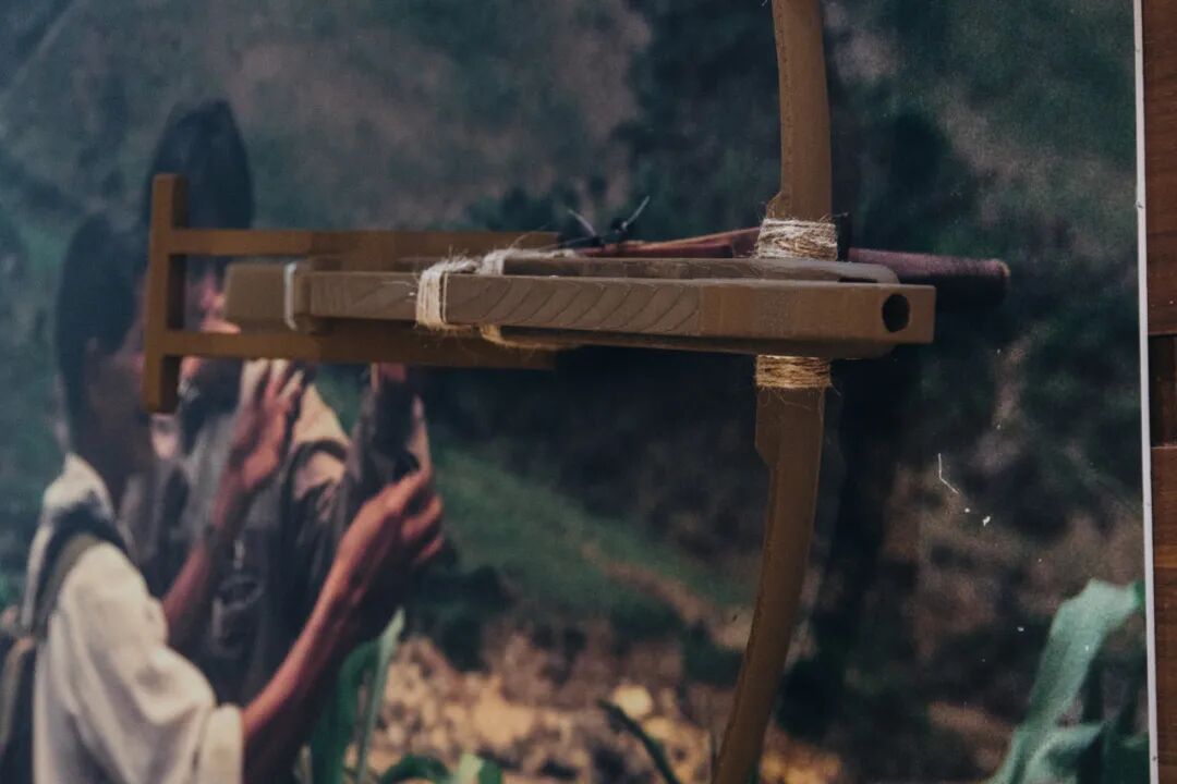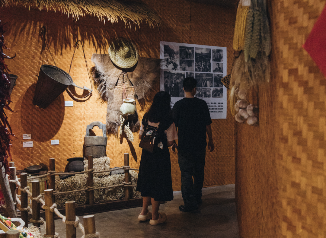 刚进展厅就会被眼前的引言吸引,每个观众都会细细阅读策展人举办这场展览的初心;一楼三角区的1:1傈僳族传统民居,简直是把怒江峡谷的家「搬」来了深圳。木屋的每一根梁柱都藏着在陡峭山脉上造家的智慧,火塘边的老物件包括陶罐、墙上挂着的狩猎工具、溜索槽、蓑衣、手抓饭,随手一拍都是「穿越到傈僳村寨民居」的既视感。